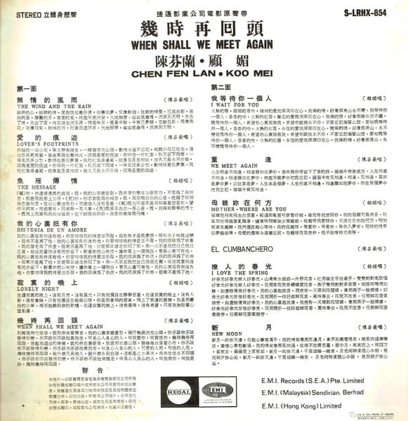 Chen Fen Lan, Carrie Koo Mei – 幾時再回頭 When Shall We Meet Again