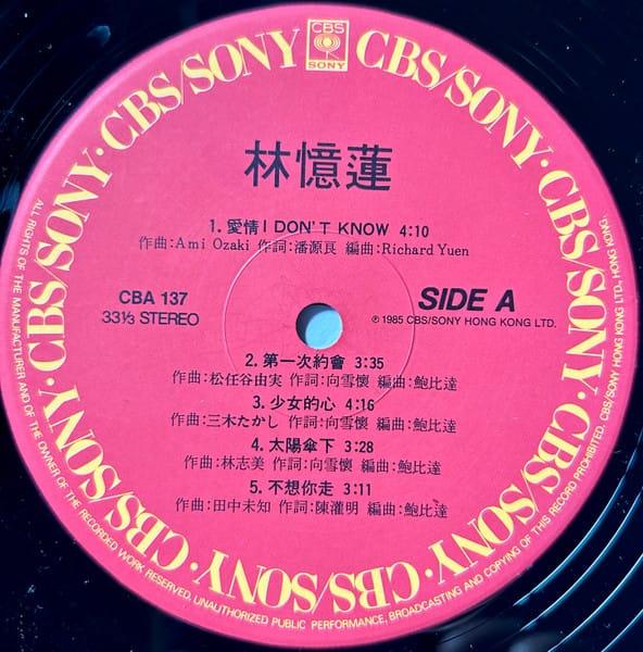 Rare Sandy Lam record, before her more recognizable 90s records, these are all insanely dancey and great for the dancefloor.
