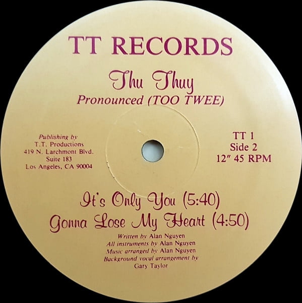 Self released Vietnamese American synth pop, a little freestyle influence but ultimately more on the pop side. Hard to find!! Both sides romantic and sweet.